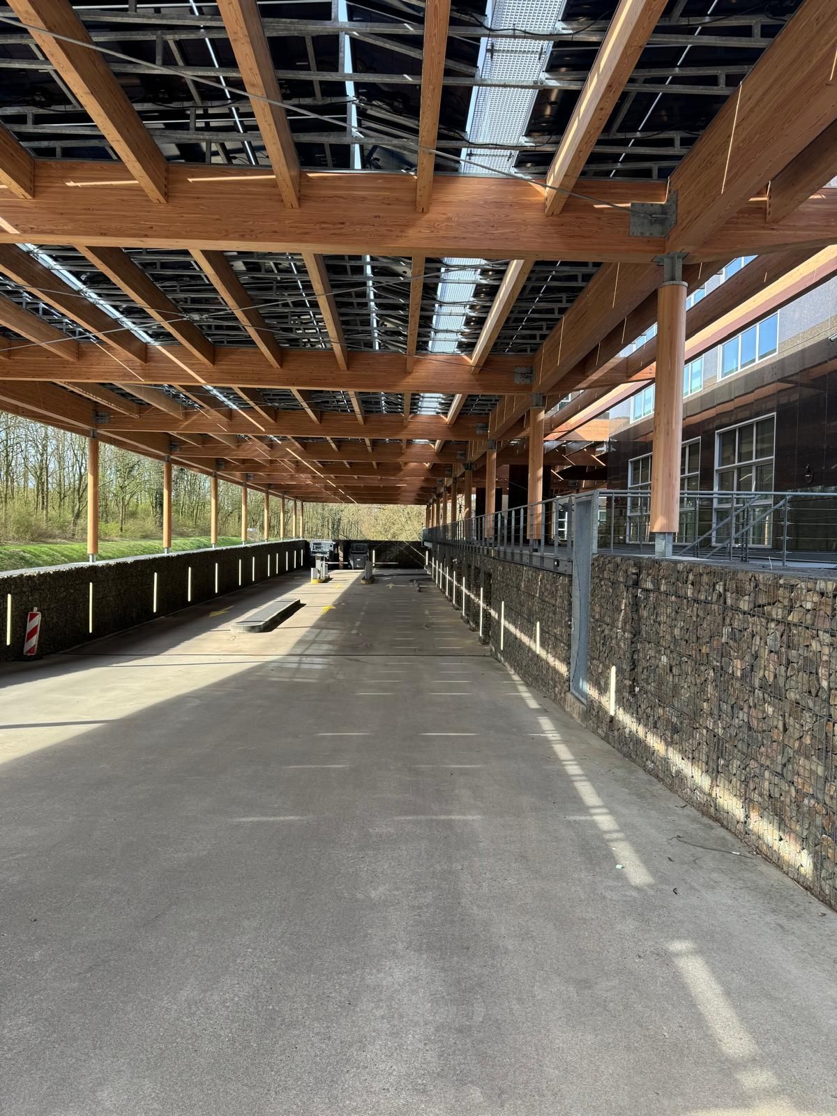 The solar panels are installed on the roof of the office building, on a new canopy at the entrance to the car park, and on the roof of the parking deck in front of the building. The electricity generated is used for, amongst other things, climate control systems and lighting, and for charging the electric vehicle fleet. Additional charging points are being installed; a battery is also being provided to use locally generated energy more intelligently and to limit peak loads on the grid. The installation can generate up to 1,000,000 kWh per year.
