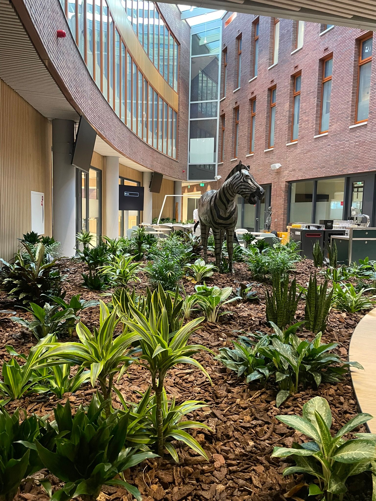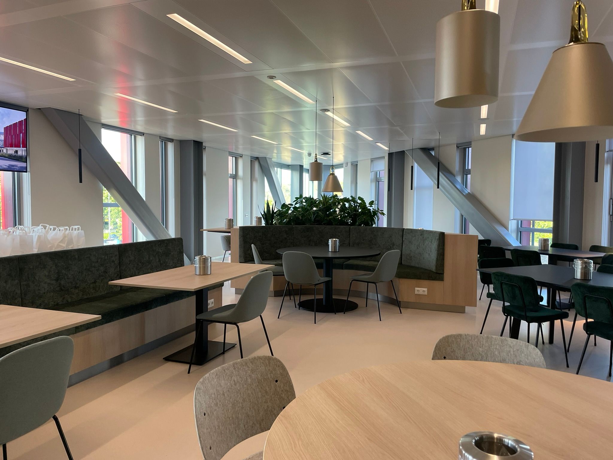 Het gebouw is uitgebreid met een eigentijdse, energie-neutrale werkomgeving en circulair gebouwd: oude materialen zoals kozijnen, deuren en plafondplaten kregen een tweede leven. De bestaande bouw bleek vitaal genoeg om nog decennialang mee te kunnen.