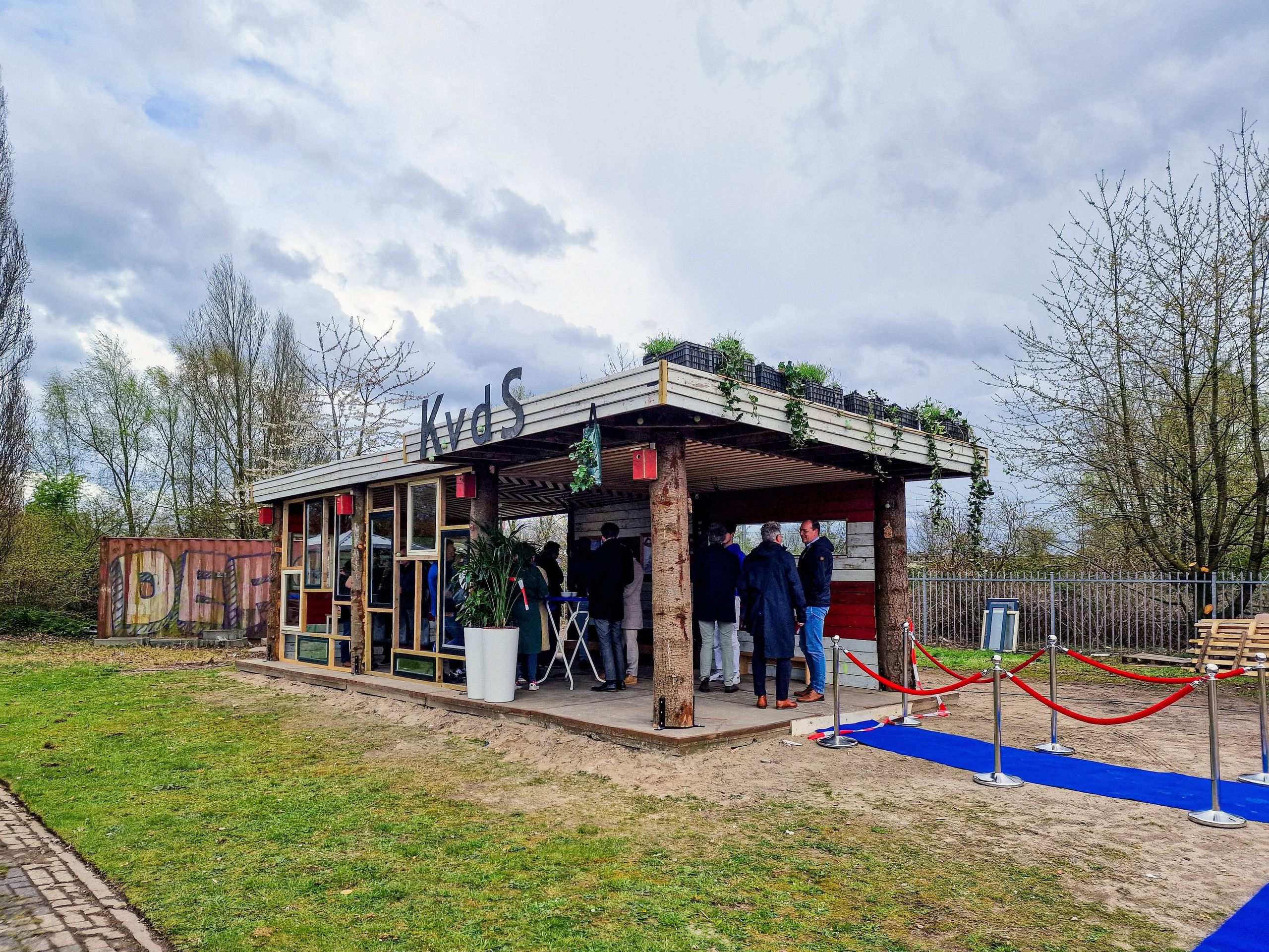 On Wednesday, April 12th, alderman Tyas Bijlholt and student Ties Prins opened the Room for the City: the sustainable little brother of the new House for the City of Amersfoort. A group of students from ROC Midden Nederland designed and built this circular pavilion, so visitors will soon be able to find more information there about the newly built House for the City. A beautiful and instructive result of the collaboration between ROC Midden Nederland Kraaijvanger Architects and the Municipality of Amersfoort.
