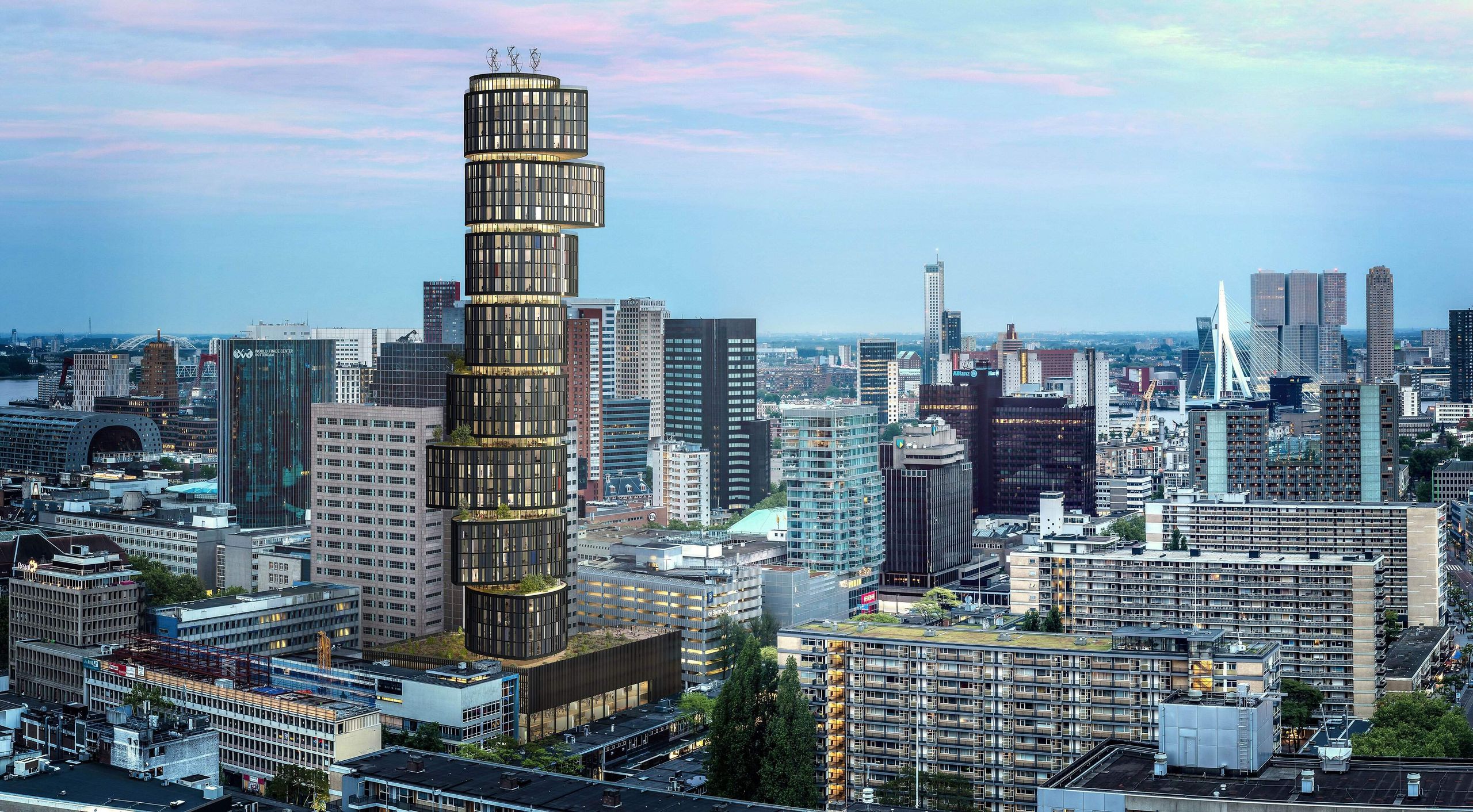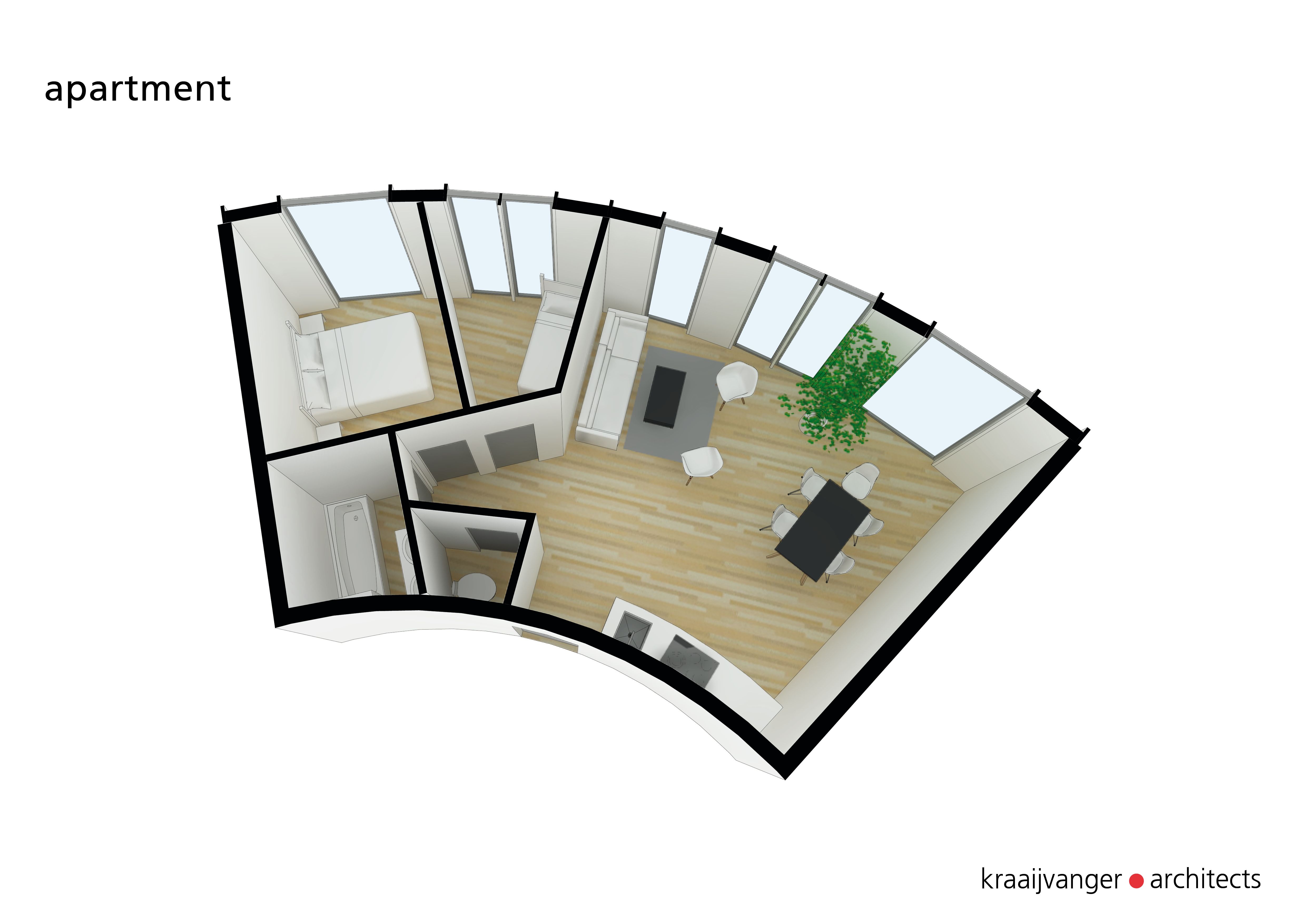 For the municipal offices for the southern Dutch town of Venlo we involved our client, the municipality in order to maximize the use of cradle to cradle materials -about 80%-. Our ambition is to raise that percentage in future projects, without a client yet in view, we asked ourselves if it would it be possible to develop an upmarket residential building where 100 % of the construction materials are recycled, combining a sustainable lifestyle with luxury standards.