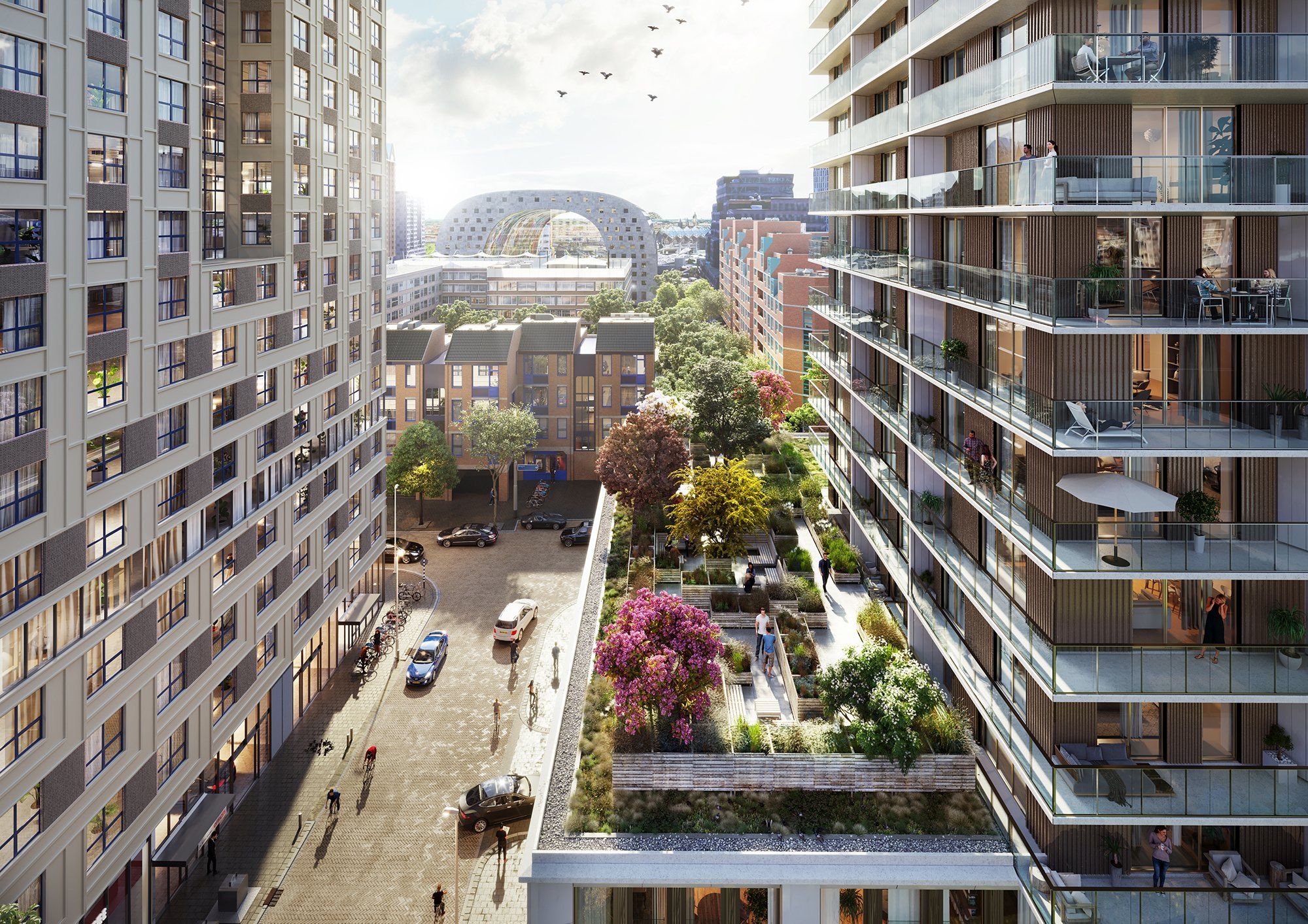 Replacing an outdated office with a vital, comfortable residential building with a diversity of collective functions will be a great contribution to the livability of the center. The building is as far as possible nature-inclusive and cradle-to-cradle. The apartments will be surrounded by beautiful, deep balconies. The meaningless edges around the current, dense building will be transformed into lively, green areas, particularly on the waterfront.