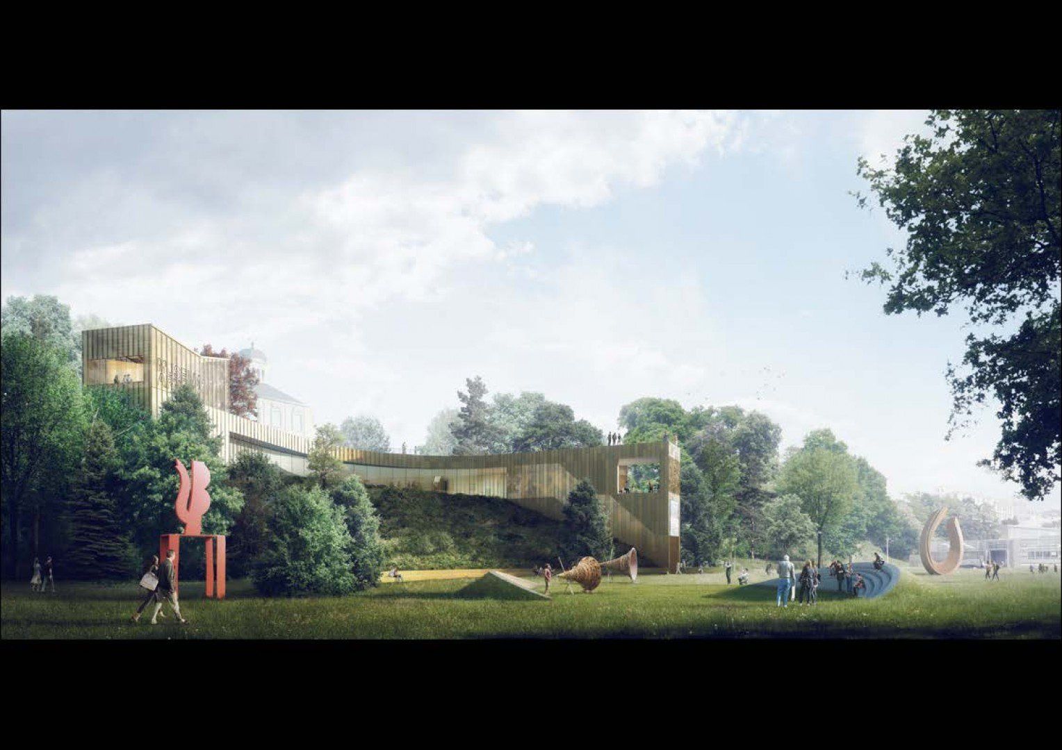 A museum that enriches society and connects people is a meeting place. An open, visible building that is interwoven with city and landscape; an accessible collection; and an open organization. This museum will be the final piece of the Arnhem culture allée. The new museum will have an exposition section on one level and will open to the landscape without blocking the view from the moraine. A new entrance at Onderlangs is connected to the dome and the access to the Utrechtseweg. The monument will be an open art society with, in addition to the grand café Pierre, space for all cultural activities at any time of the day. The dome forms the central node that connects all parts of the museum.