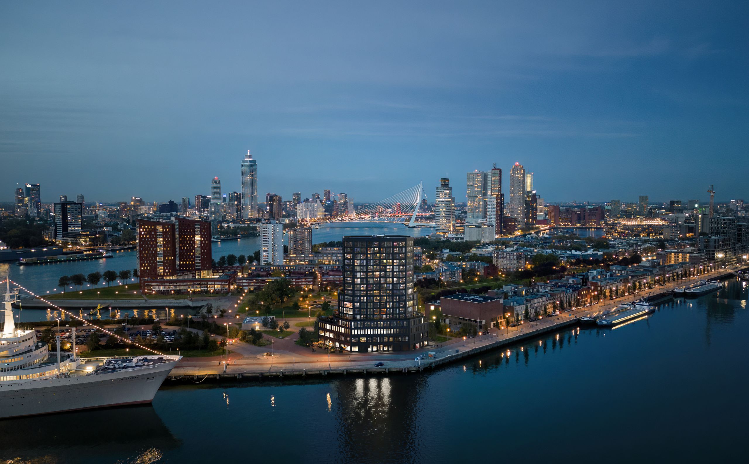 Op de kop van Katendrecht aan de Maashaven in Rotterdam is vandaag de bouw van De Scharnier officieel gestart. Dit bijzondere gebouw brengt hoogstedelijk wonen, maatschappelijke voorzieningen en ruimte voor ontmoeting samen. Met De Scharnier wordt zorgvuldig ingespeeld op de groeiende behoefte aan woningen en voorzieningen in Katendrecht, in balans met de karakteristieke identiteit van de wijk. Een initiatief van architectenbureau Kraaijvanger Architects, New Industry Development en Heijmans, dat als ‘unsolicited proposal’ bij de gemeente werd ingebracht en nu werkelijkheid wordt.