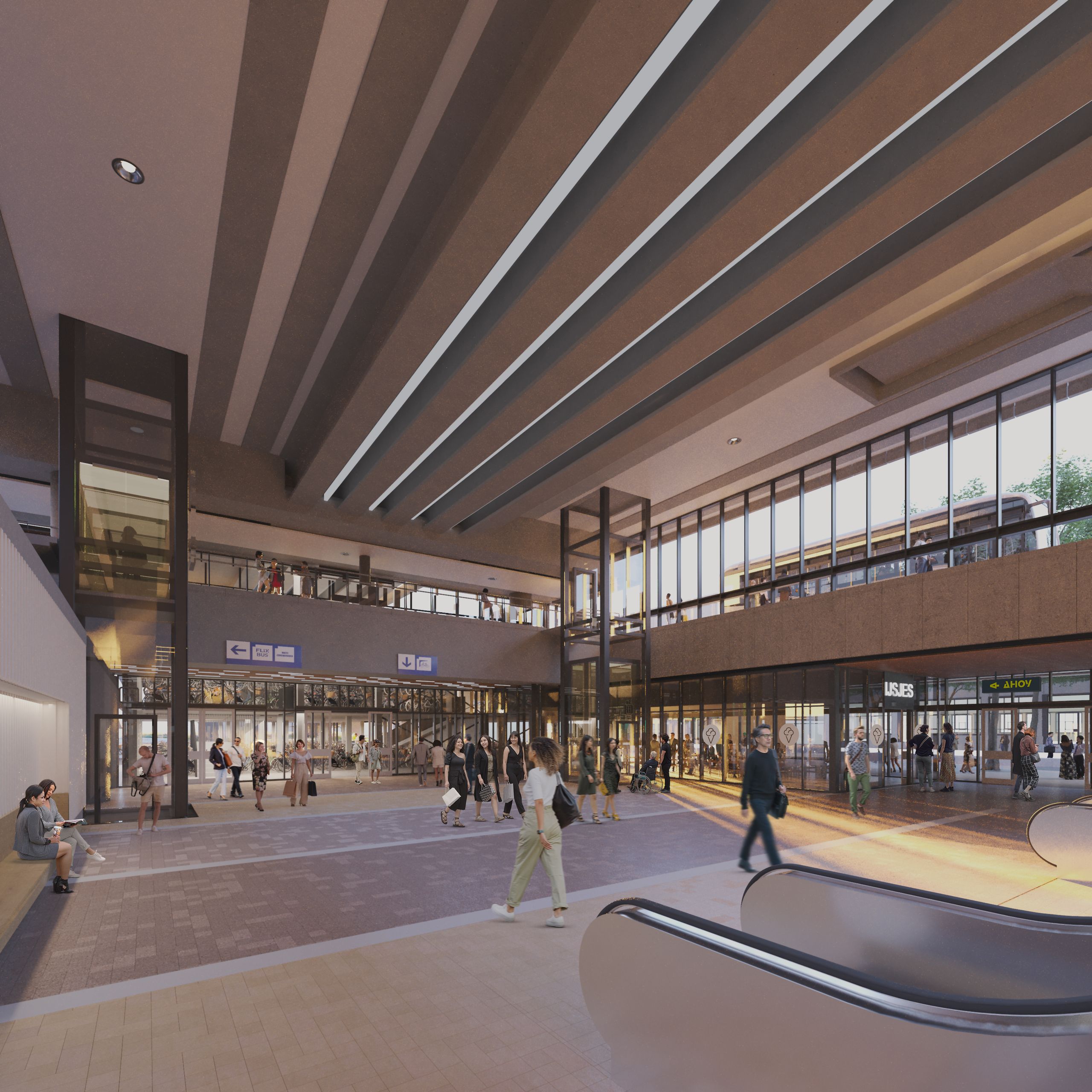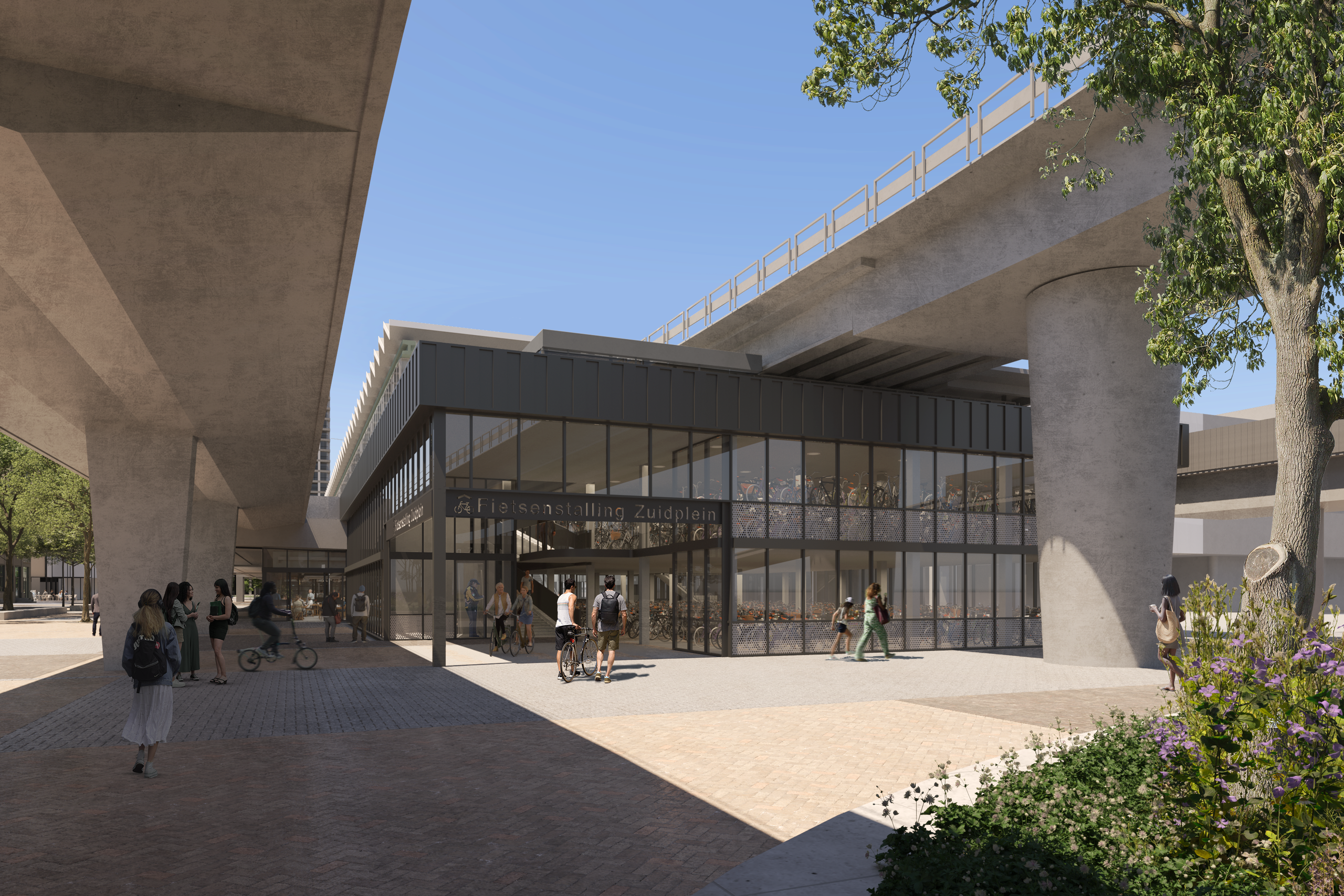 We bouwen voort op het wederopbouwicoon van architect Veerling en versterken de kwaliteiten van het bestaande station: licht, lucht en overzicht. Zo ontstaat een transparante en gastvrije plek, verbonden met de stad en klaar voor de toekomst. Bovendien komen er 7 nieuwe commerciële units in de hal, die zorgen voor extra voorzieningen en levendigheid. Daarnaast krijgt Zuidplein de grootste fietshub van Rotterdam-Zuid, met plek voor maar liefst 973 fietsen, bakfietsen en scooters - een flinke stap richting duurzame mobiliteit.