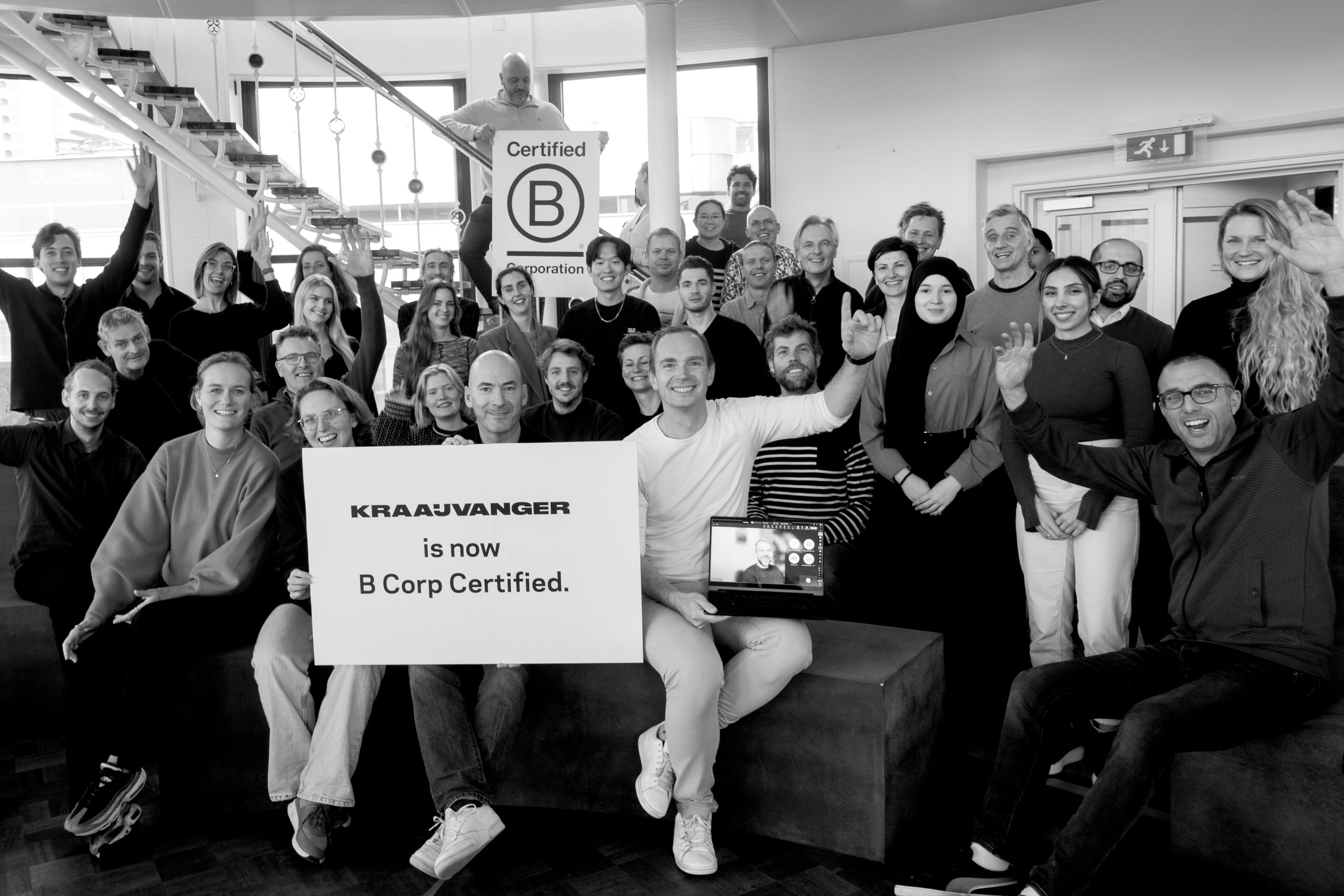 Om een B Corp te worden, moet een organisatie het B Impact-certificeringsproces doorlopen. In het certificeringsproces moet een organisatie minimaal 80 van de mogelijke 200 punten behalen. Kraaijvanger heeft een score van 118,1 punten behaald, daarmee scoren we niet alleen bovengemiddeld, we staan daarmee ook nog eens in de top 10 van B-corp gecertificeerde architecten bureaus wereldwijd! Sterker nog we zijn het eerste Architectenbureau in Rotterdam met een B-corp certificaat!