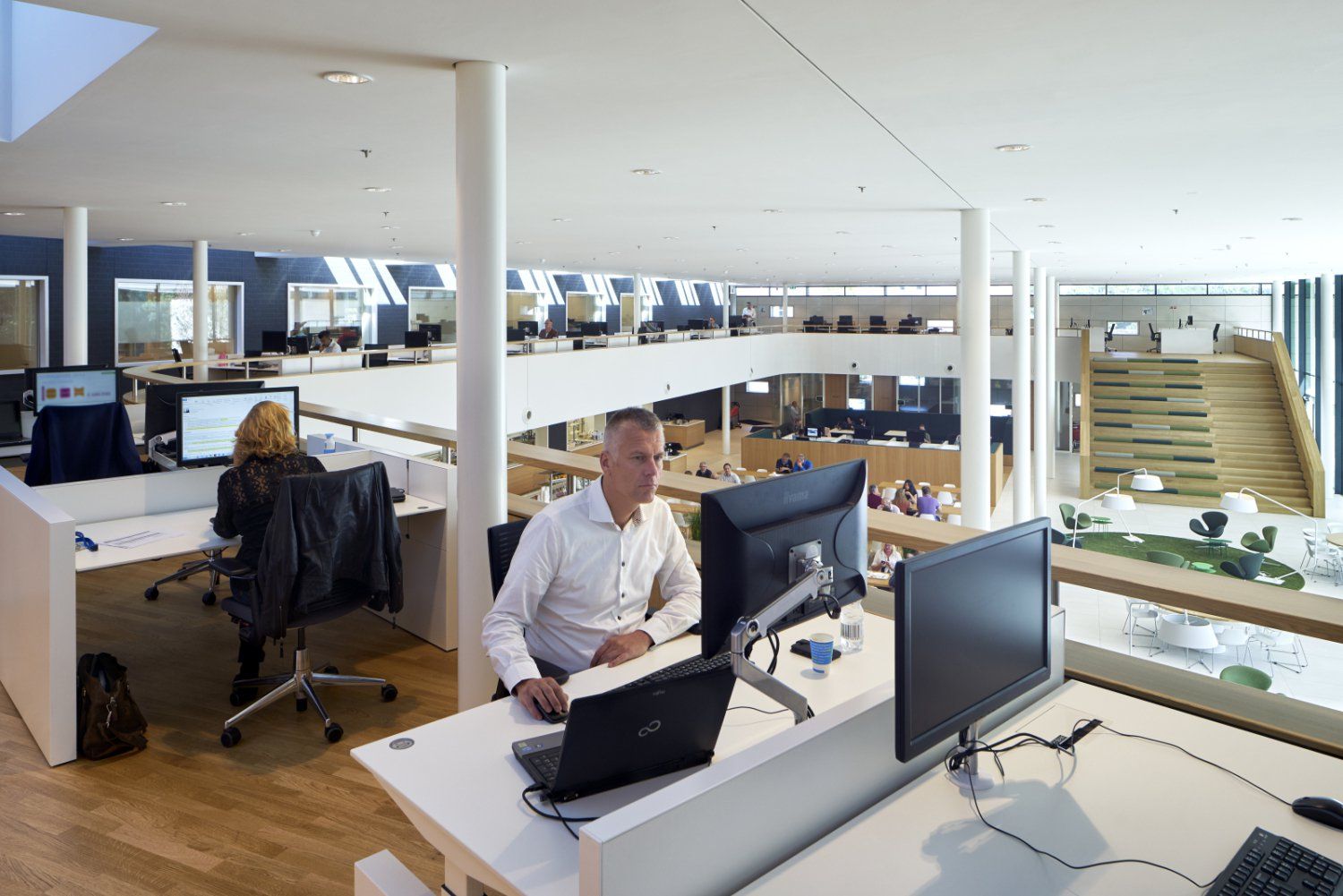 Het interieur is volledig vernieuwd. Het nieuwe ontwerp is gebaseerd op een niet plaatsgebonden werkconcept. Communicatietrappen en vides hebben de onderlinge relaties tussen afdelingen verbeterd.