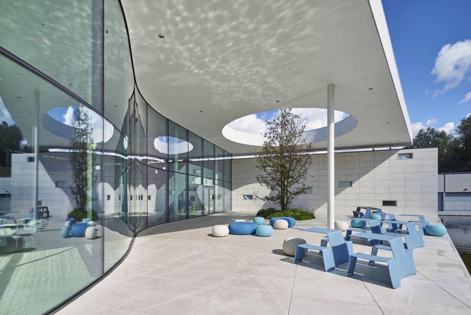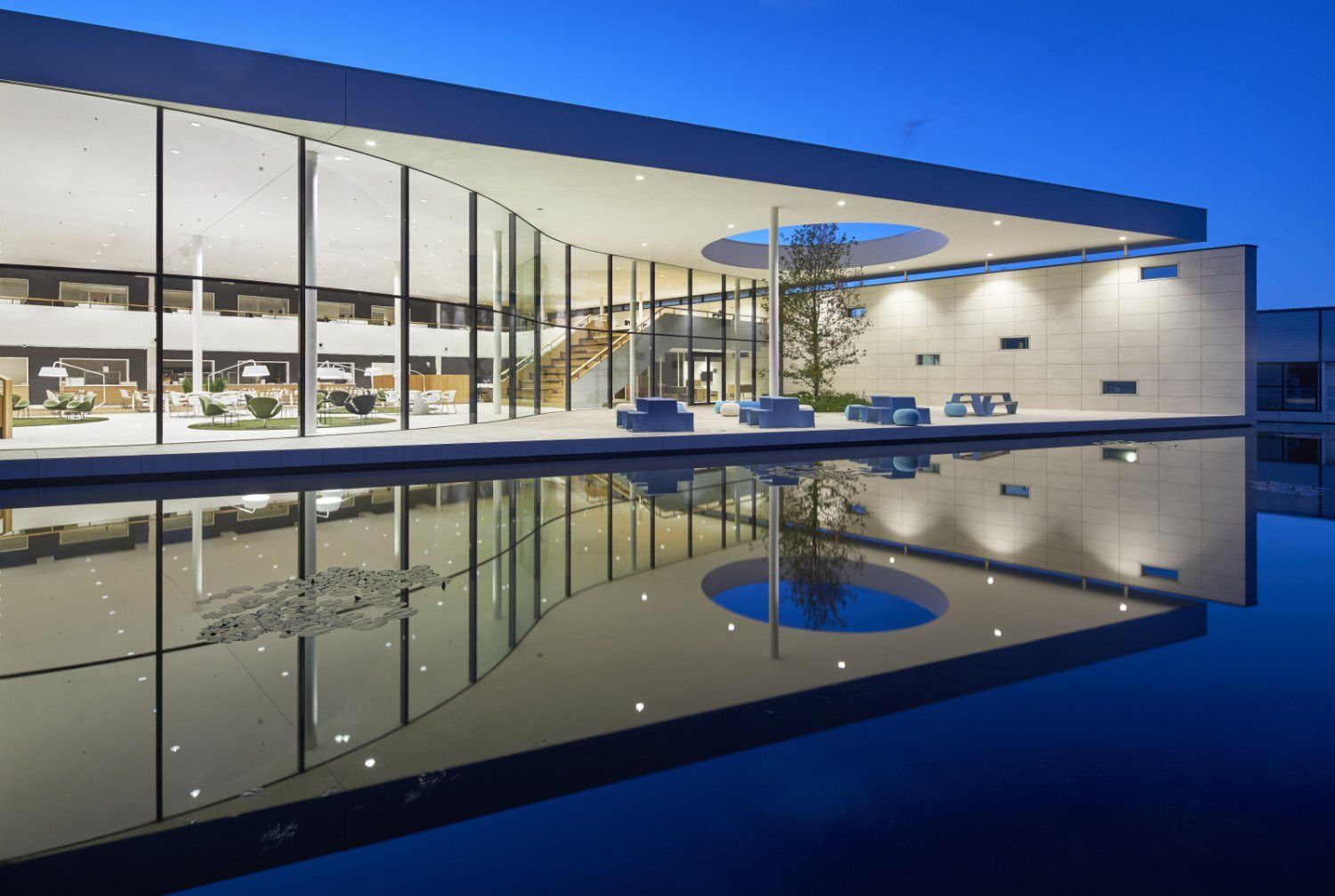 In de identiteit van PWN speelt het thema water een cruciale rol; het bedrijf heeft immers als hoofdtaak heeft het leveren van schoon drinkwater. Dit komt tot uitdrukking in de toepassing van heldere en transparante materialen, maar bovenal door de waterpartij bij het gebouw, die door middel van reflecties licht binnenbrengt.