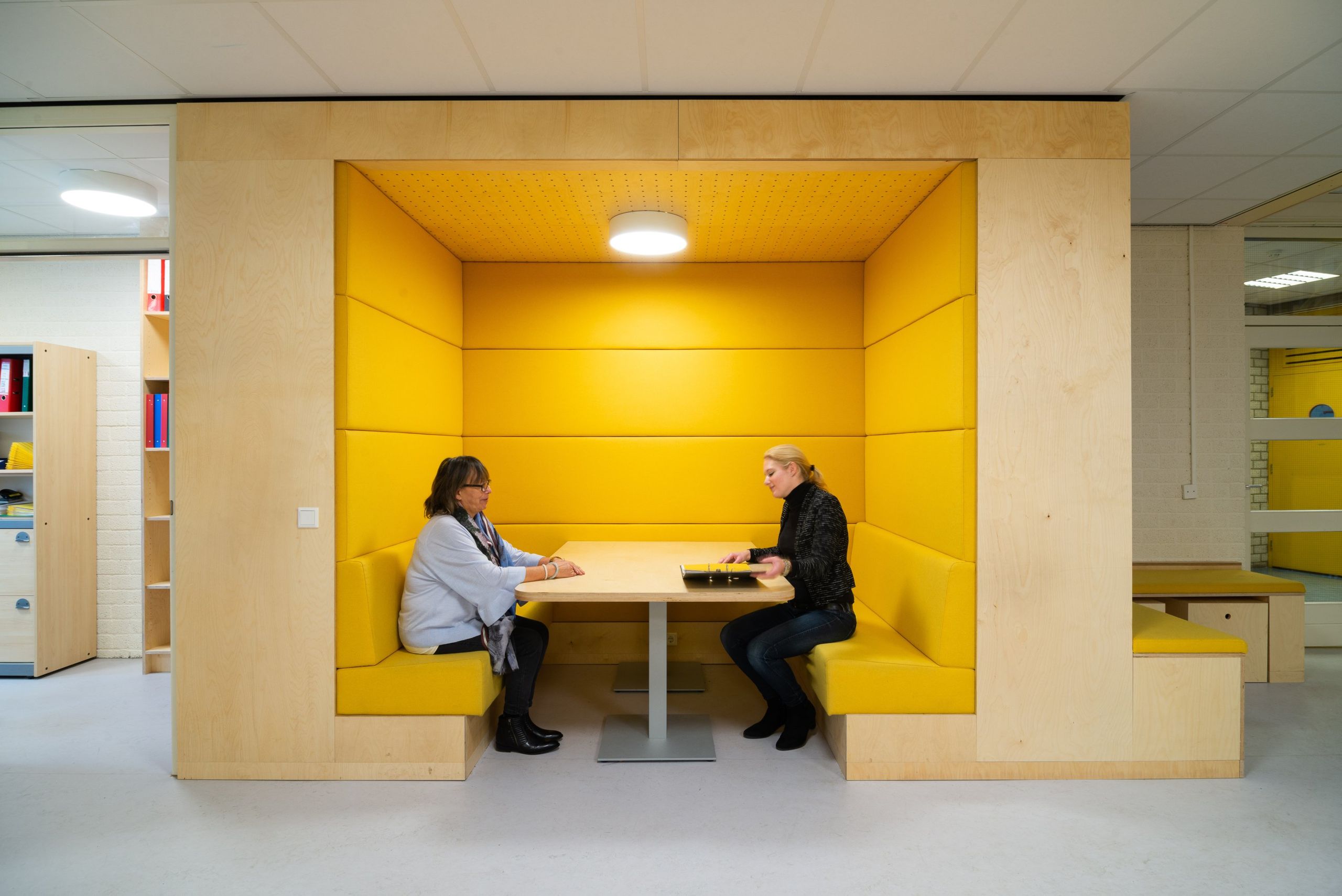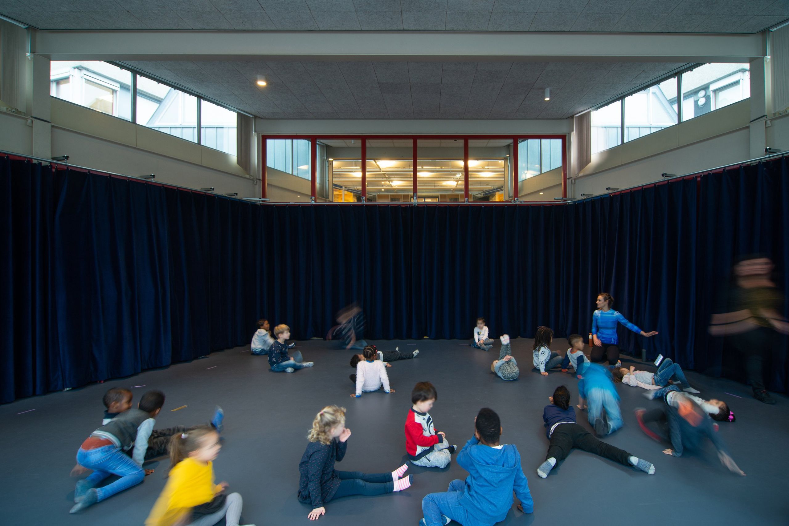 Er is te weinig geld voor onderwijs in Nederland. Vaak gaat dat ten koste van investeringen in het gebouw. Een slecht functionerend gebouw heeft een negatieve invloed op de concentratie, gezondheid en leerprestaties van kinderen. Voor OBS De Schalm hadden we een gefaseerd plan gemaakt waarbij we afhankelijk van de hoeveelheid geld die we zouden binnenhalen, meer konden doen. De school onderscheid zich met aandacht voor podiumkunsten. De podia en mediatheek veel functioneler en gezonder te maken als dé ontmoetingsplek in het gebouw was prioriteit nummer één. Daaropvolgend waren de entree en lokalen aan de beurt om verbeterd te worden. Bij alles wat we gedaan hebben heeft slim ontwerp en circulaire materialen ervoor gezorgd dat de school gezonder wordt. En het is mooi om te zien dat we dat met gemeenschappelijke betrokkenheid bereikt hebben.