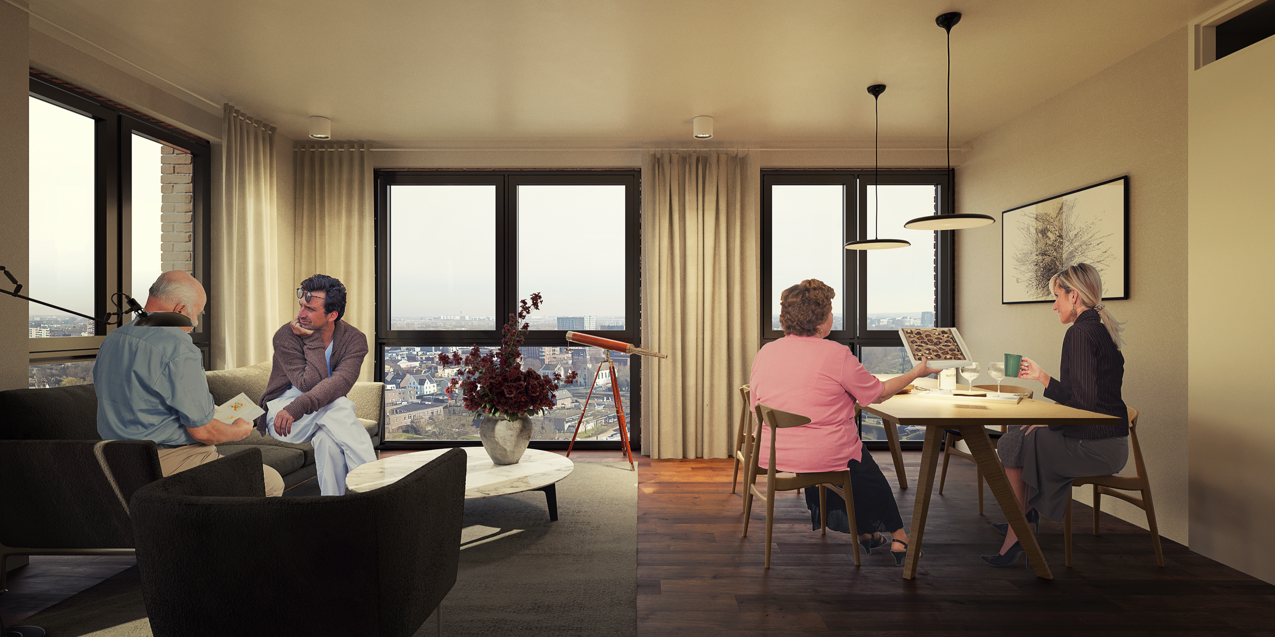 In tijden van snelle stedelijke groei willen mensen steeds dichter bij de stad wonen, terwijl ze niks missen van de natuur. Om deze reden is er plek gemaakt voor meer dan 3000m2 daktuin. Iedereen die hier woont heeft toegang tot deze daktuinen. Zo kan iedereen, met grote of kleine woningen, middenin de stad ook nog eens genieten van de natuur. Na een bezoek aan het theater, de bioscoop, horeca of de veelzijdige winkels is er de mogelijkheid om even bij te komen in een rustig groene omgeving op het dak.