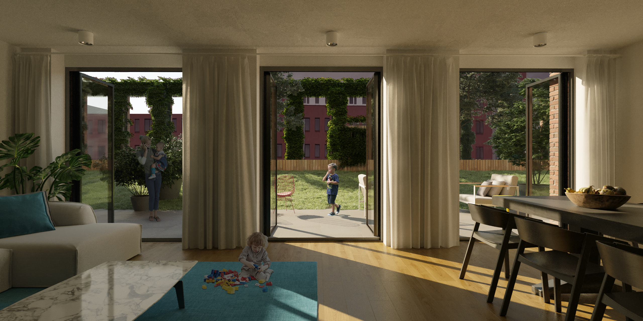 De horeca op en rond het plein maken het plein compleet. Buiten en binnen is er ruimte voor gezinnen, starters en ouderen om elkaar te ontmoeten. De royale entree voor de woningen aan de Nieuweweg maakt deze straat levendiger. Commerciële ruimte aan Kruisweg versterkt de functie en aantrekkelijkheid van deze historisch belangrijke straat.
