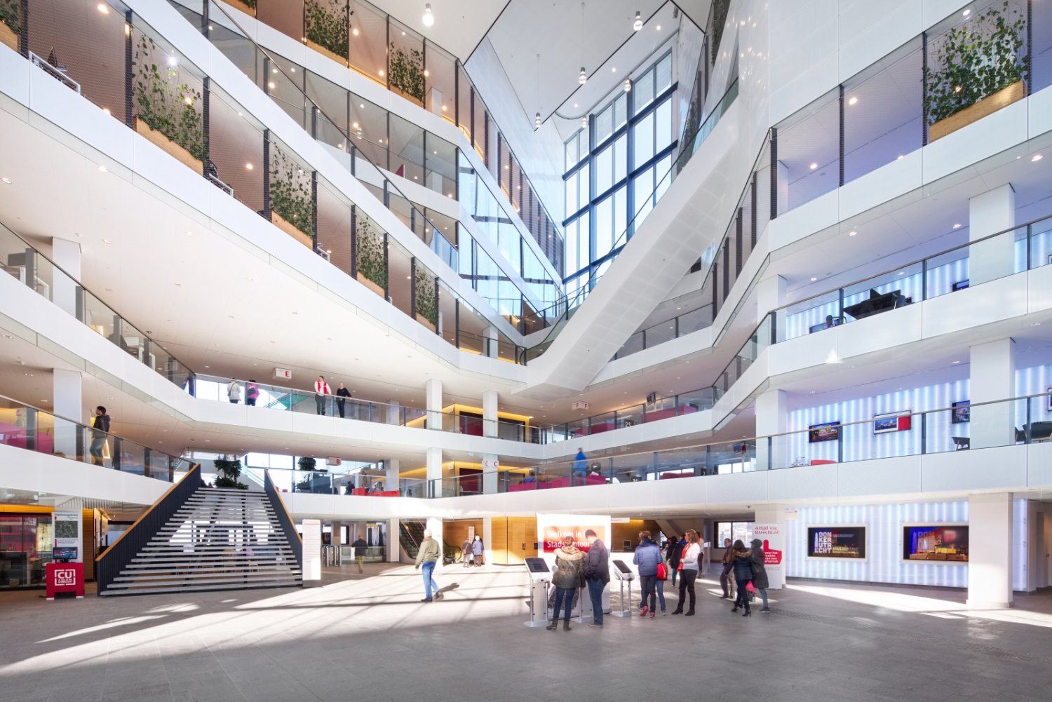 Het interieur van Stadskantoor Utrecht is ontworpen voor een modern kantoorconcept met flexibele, persoonsongebonden werkplekken. Drie verdiepingen (niveau 6, 11 en 21) worden ingericht als plaza voor vergaderen, eten en ontmoeten. Deze niveaus hebben een grotere plafondhoogte.
