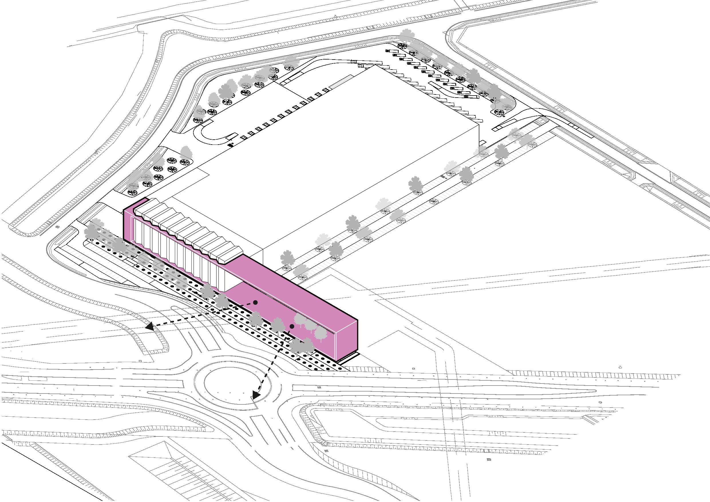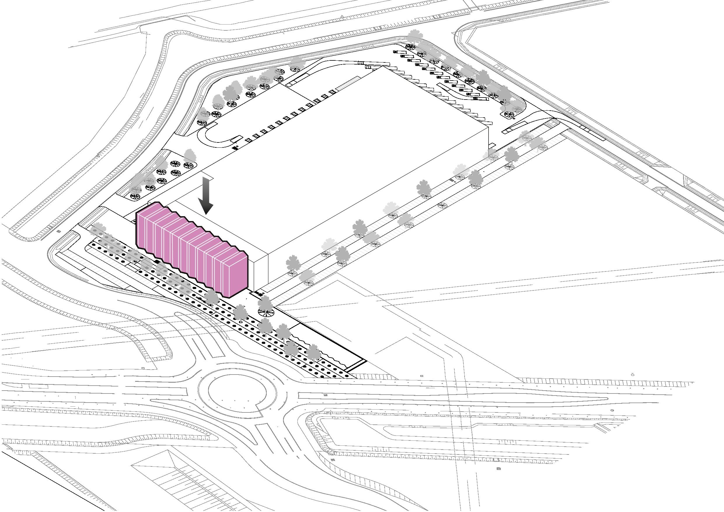 Het ontwerp voor het gestapelde distributiecentrum is 23000 m2 en bestaat uit twee bouwlagen met een vrije hoogte van 6,50 m. Binnen deze hal vind grofweg het volgende proces plaats;
