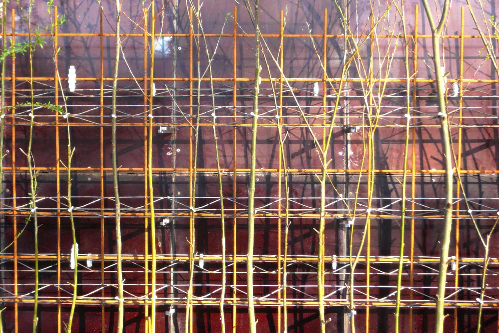 De ‘willow wall’ is een experiment in beton. In een tuinmuur van beton zijn in de kist jonge wilgentakken mee gestort. Het project kon daarom alleen uitgevoerd worden in de maand april: Immers dan staan de wilgentakken op uitbotten. Na 3 weken kwamen de eerste bladeren door. Inmiddels zijn 9 takken door de beton uitgelopen, en zichtbaar is dat meerdere andere takken nog zullen volgen.