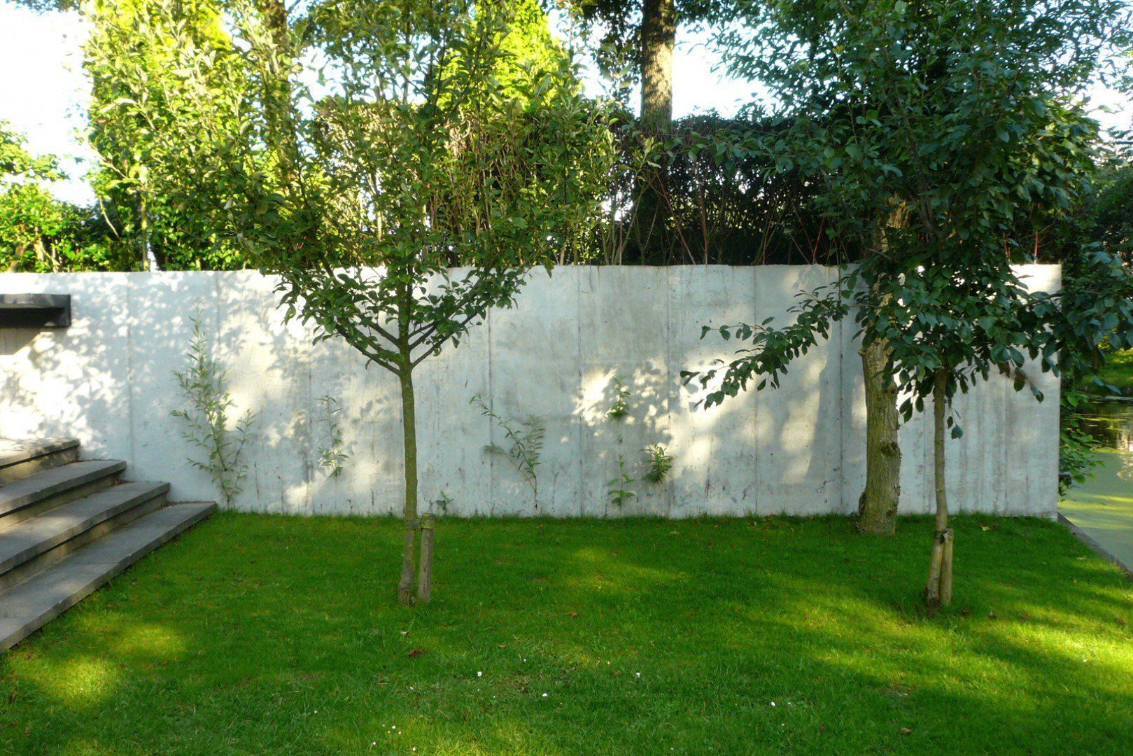 De hoop is dat uiteindelijk de groeikracht van de wilgen de beton in de oppervlakte zal doen springen, zodat de groei nog meer ruimte krijgt. Op het terras gedeelte is een keukenblad van zwarte, gepolijste beton aangebracht, waarin een ondiepe spoelbak en een sparing voor een barbecue zijn opgenomen. Een simpele led-verlichting zal het project completeren. Het project beoogt het harde, permanente karakter van beton te verzoenen met de groeikracht van de natuur en het vermogen om te veranderen en op een mooie manier stukje bij beetje te groeien en - uiteindelijk- te vergaan.