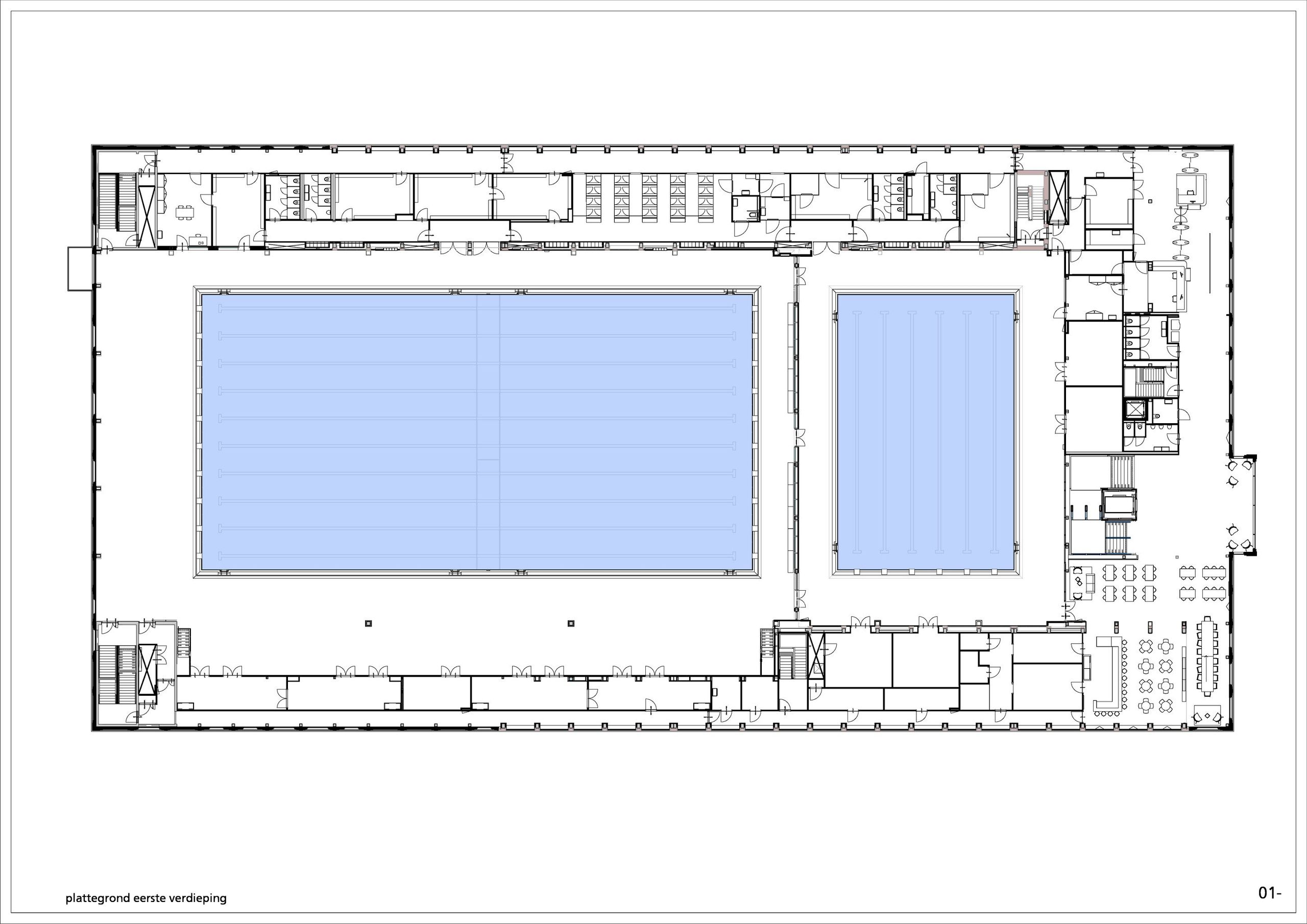 Het zwembad ligt op de eerste verdieping, hiermee ontstaat er meer privacy voor de zwemmers en wordt aan de gooilandsingel ruimte voor levendige winkels en horeca gecreëerd. De twee zwemzalen liggen tussen de oude kantoren in, de kantoren zijn getransformeerd tot kleedkamers en horeca.